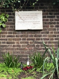 On any day fresh tributes to Marlowe can be found at his grave. On the day I took this photo there were flowers, candles, and a glass skull bong.